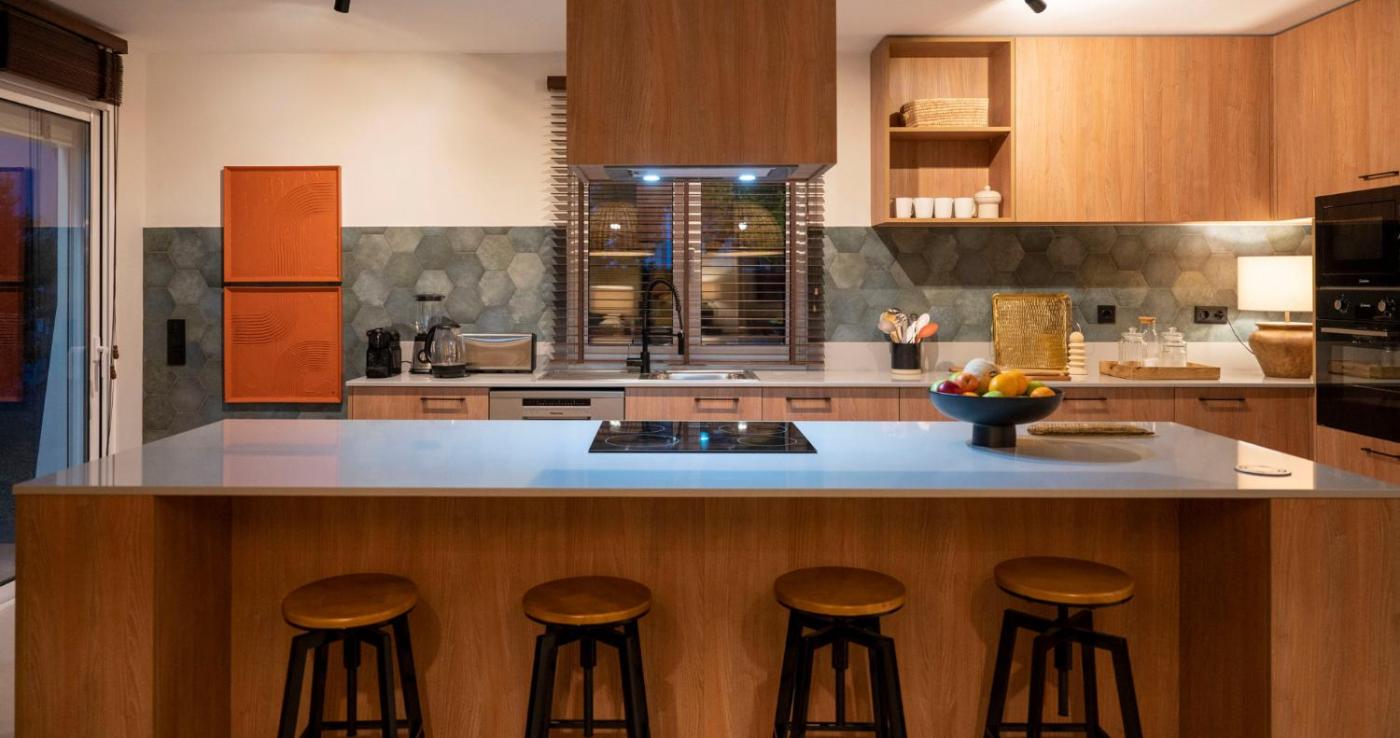 The holiday home comes with 3 bedrooms, 3 bathrooms, bed linen, towels, a flat-screen TV with streaming services, a dining area, a fully equipped kitchen, and a terrace with pool views. A private entrance leads gueststhe holiday home,they can enjoy some fruits. The property has an outdoor dining area.