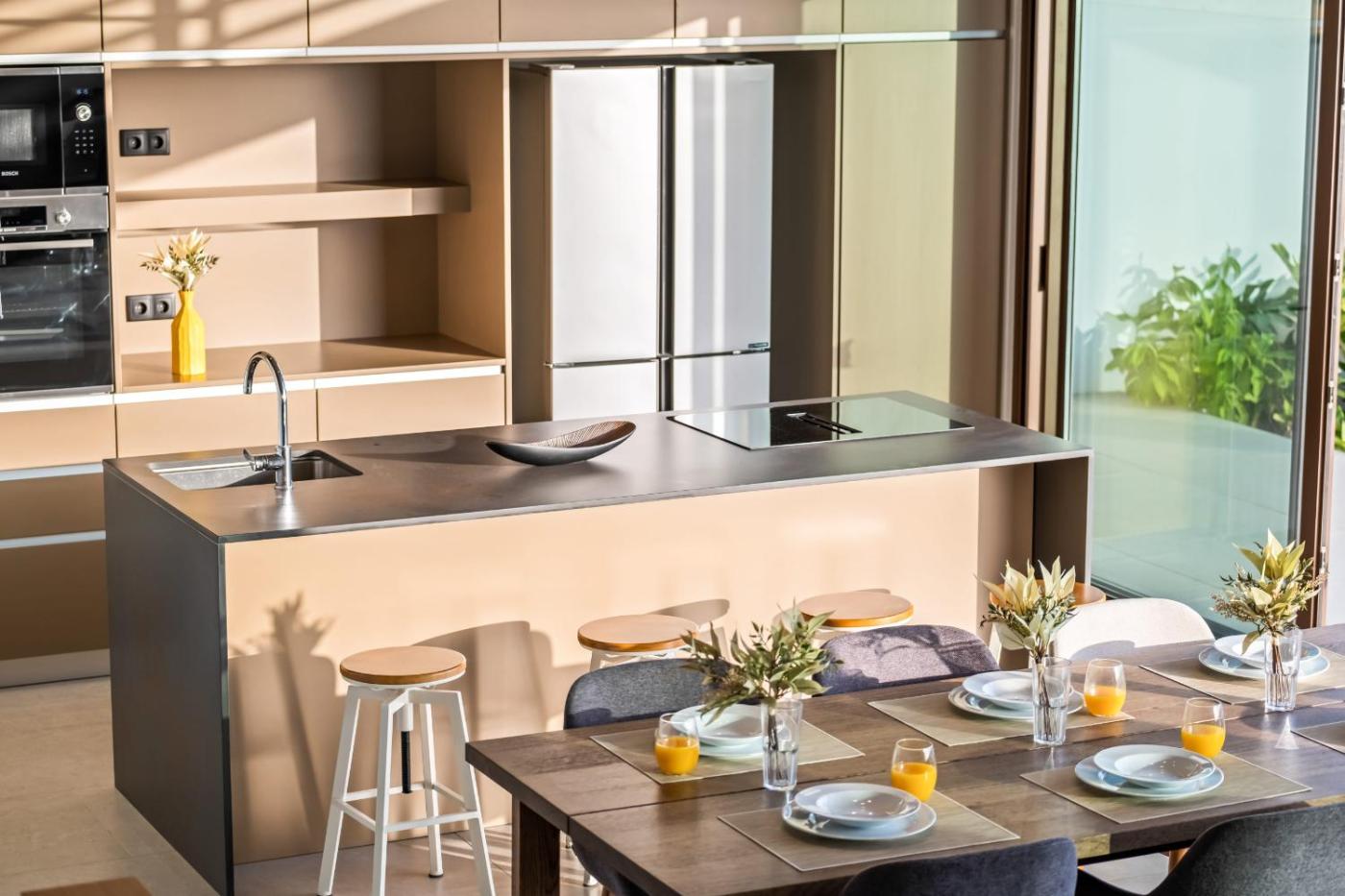 Superior Villa. This villa offers a pool with a view. Featuring a private entrance, this spacious villa also comprises 3 bedrooms, a seating area and 3 bathrooms with a bath and a shower. Meals can be prepared in the kitchen, which comes with a stovetop, a refrigerator, a dishwasher and kitchenware. The air-conditioned villa provides a TV with cable channels, a washing machine, soundproof walls, a tea and coffee maker as well as sea views. The unit offers 4 beds.