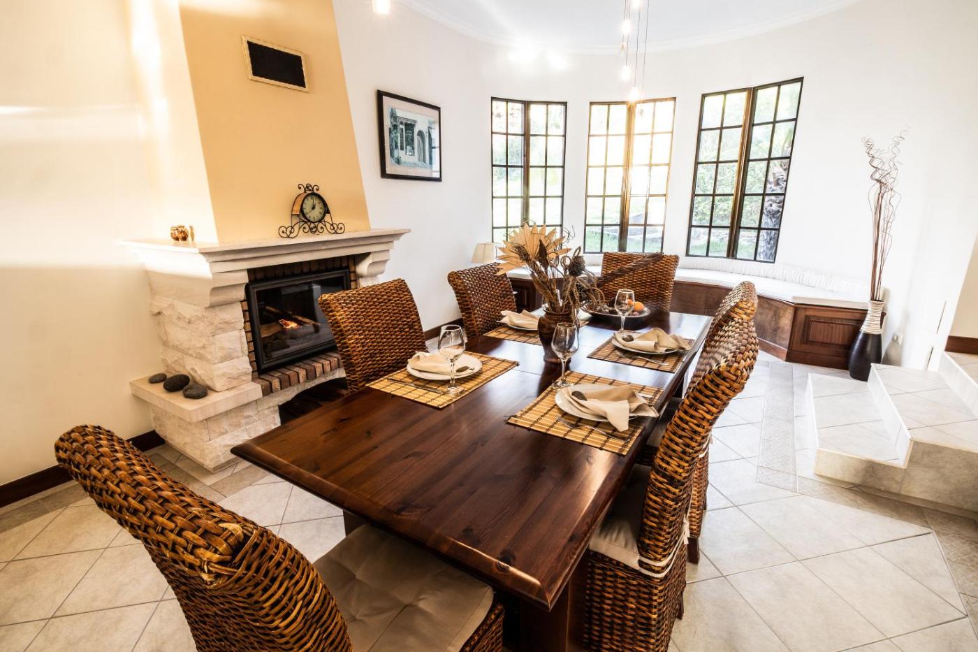 The spacious villa is equipped with 2 bedrooms, 2 bathrooms, bed linen, towels, a flat-screen TV with streaming services, a dining area, a fully equipped kitchen, and a terrace with sea views. Guests can take in the ambience of the surroundings from an outdoor dining area or keep themselves warm by the fireplace on colder days. Additional in-room amenities include wine or champagne.