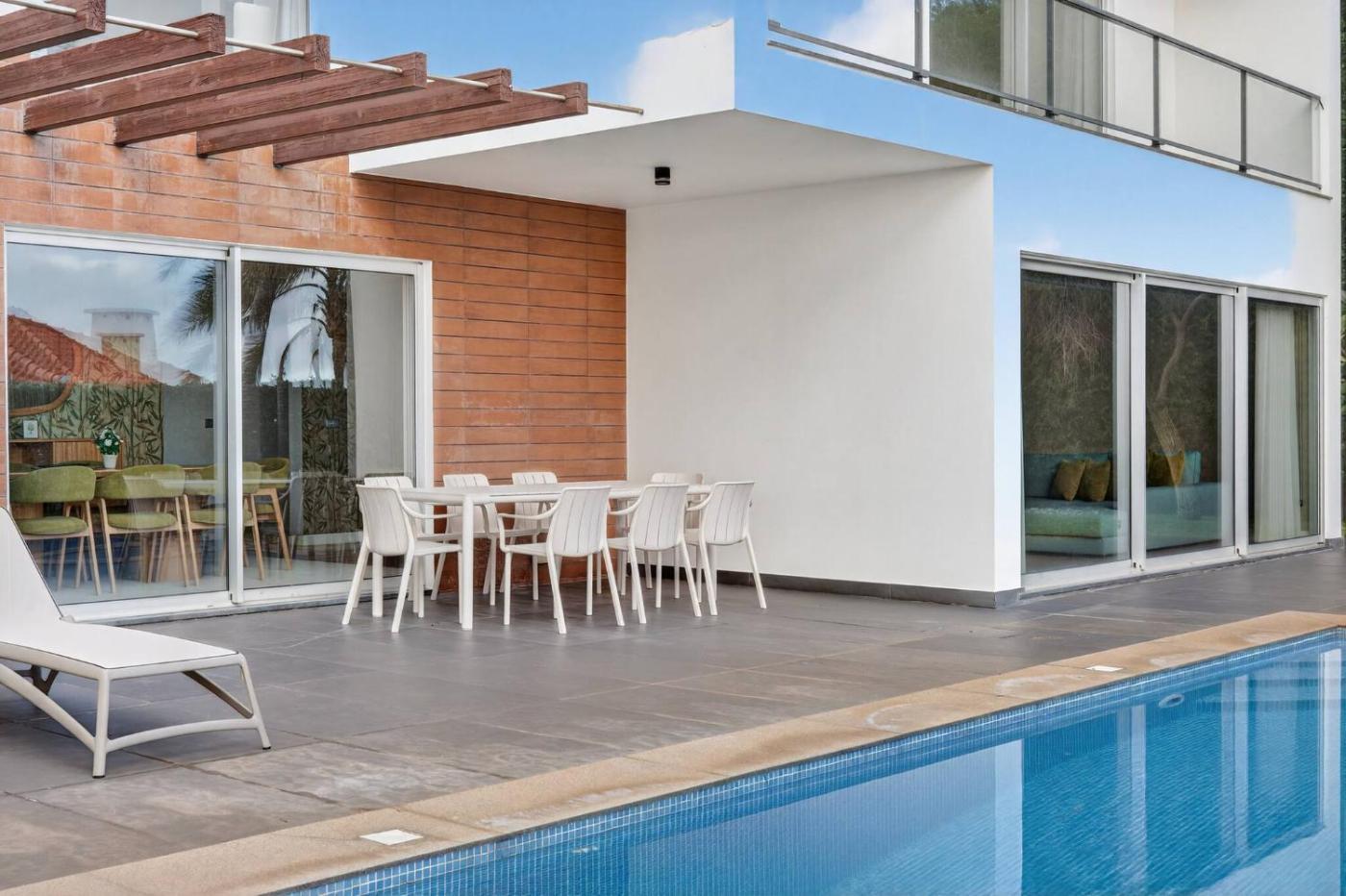 Villa. This holiday home features a private pool. This spacious holiday home features 4 bedrooms, a kitchen and 4 bathrooms with a bath and a shower. Guests will find a refrigerator, a dishwasher, kitchenware and an oven in the kitchen. The holiday home also comes with a barbecue. This holiday home has a washing machine, a tea and coffee maker, a TV with satellite channels and a balcony. The unit has 5 beds.