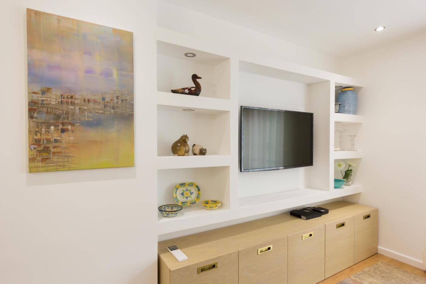 Apartment. This spacious apartment features 1 living room, 3 separate bedrooms and 1 bathroom with a bath or a shower and a hairdryer. The well-equipped kitchen has a stovetop, a refrigerator, a dishwasher and kitchenware. The apartment features air conditioning, a washing machine, a coffee machine, a wardrobe, as well as a flat-screen TV. The unit has 6 beds.