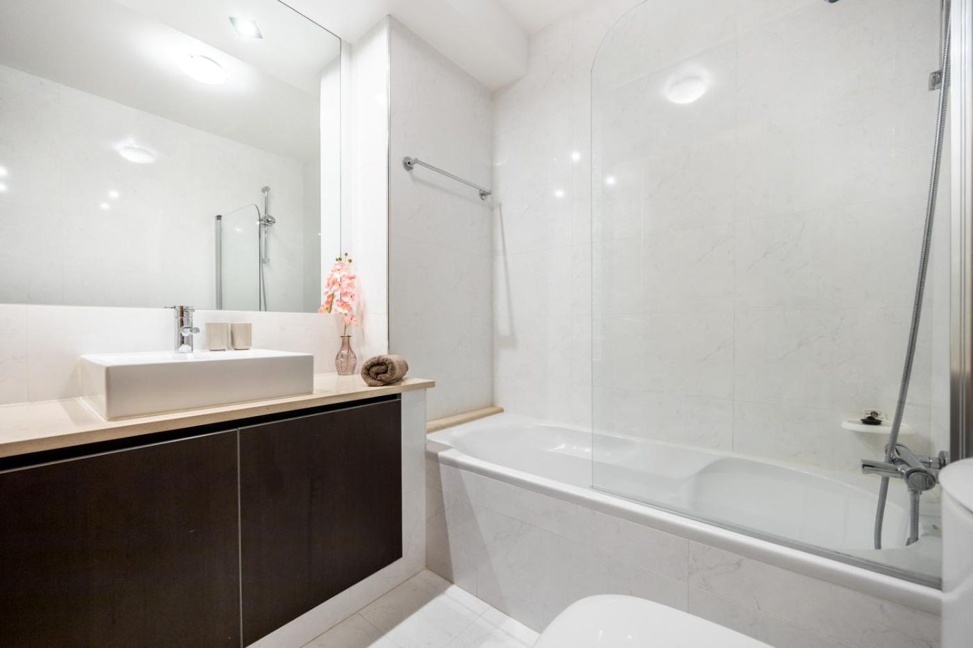 Two-Bedroom Apartment. Boasting a private entrance, this air-conditioned apartment comes with 1 living room, 2 separate bedrooms and 2 bathrooms with a bath and a shower. Meals can be prepared in the well-fitted kitchen, which features a stovetop, a refrigerator, a dishwasher and kitchenware. A seating area with a flat-screen TV, a washing machine and a balcony are available in this spacious apartment. The unit has 4 beds.
