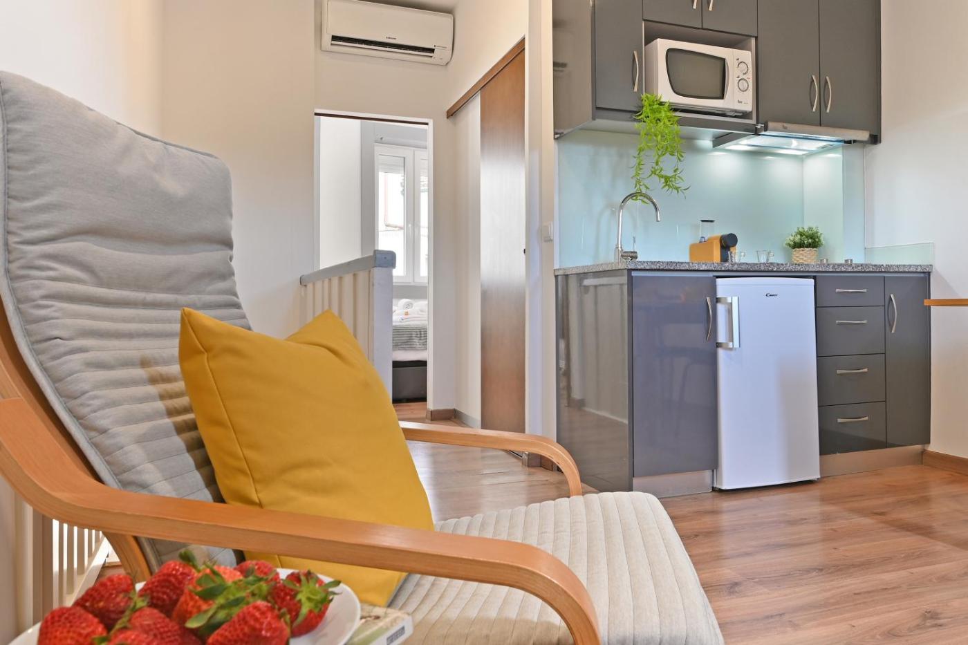 One-Bedroom Apartment. This apartment is comprised of a kitchenette, a seating area, 1 separate bedroom and 1 bathroom with a shower and a hairdryer. Guests can make meals in the kitchenette that comes with a stovetop, a refrigerator, kitchenware and a microwave. The apartment offers a tea and coffee maker, a dining area, a tiled floor, heating and a flat-screen TV with satellite channels. The unit offers 1 bed.