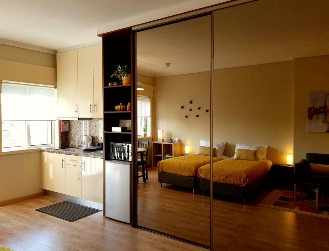 Standard Studio. The fully equipped kitchen has a stovetop, a refrigerator, kitchenware and a microwave. The spacious studio features a private entrance, a tea and coffee maker, a balcony with city views as well as a private bathroom boasting a shower. The unit has 2 beds. ;