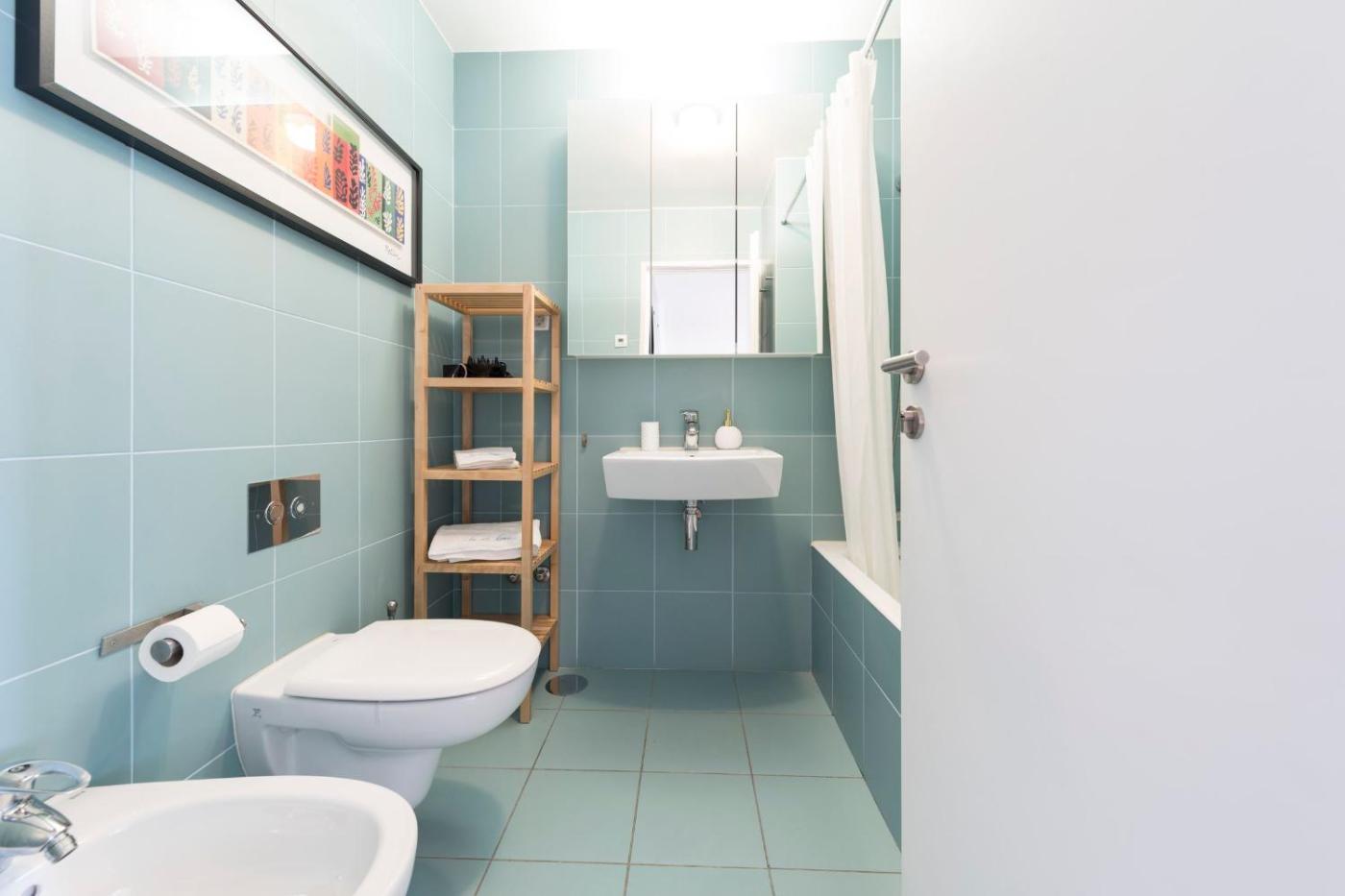 Studio Apartment. This apartment is comprised of a kitchen, a seating area, 1 separate bedroom and 1 bathroom with a bath and a bidet. Guests can make meals in the kitchen that is fitted with a stovetop, a refrigerator, a dishwasher and kitchenware. This apartment features a washing machine, flat-screen TV with streaming services, city views, as well as chocolate for guests. The unit offers 1 bed.
